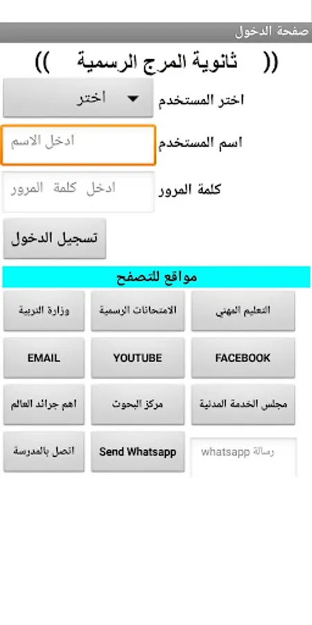 هذا التطبيق ينقسم الى ثلاث اقسام الادارة - الاستاذ - الاهل الادارة تحتوي على: رسائل للاهل - رسائل للاساتذه - اسماء المتفوقين - البطاقة الشخصية الاستاذ تحتوي على: التلميذ المميز – امتحانات ونشاطات للاساتذة -رسائل من المدير – الاجنده –