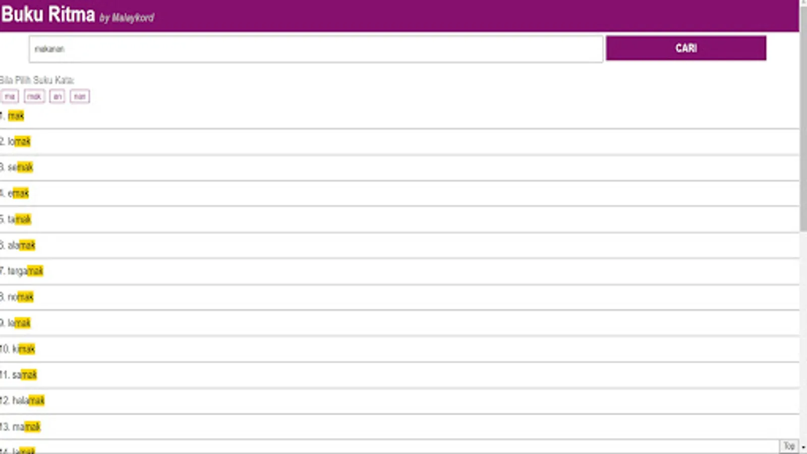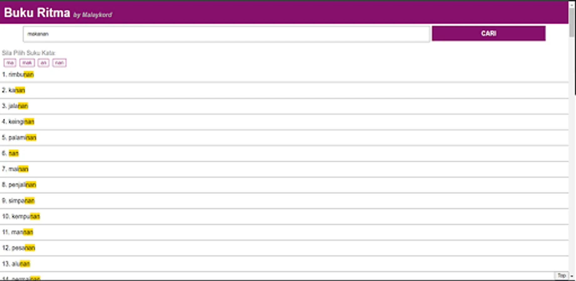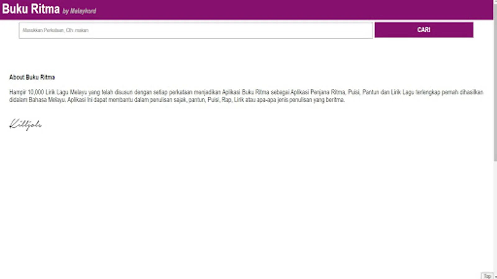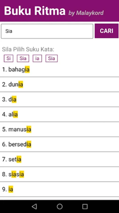 More than 10,000 Malay Song Lyrics that have been compiled with each word make the Rhythm Book Application the most complete Rhythm Generator Application, Poems, Poems and Song Lyrics ever produced in Malay. This application can help in writing poems, rhymes, poems, raps, lyrics or any type of rhythmic writing.
