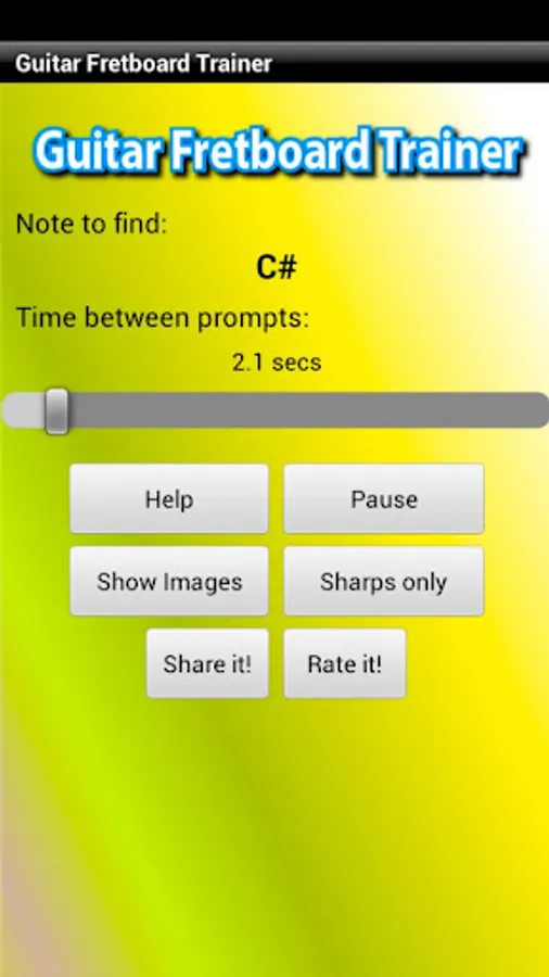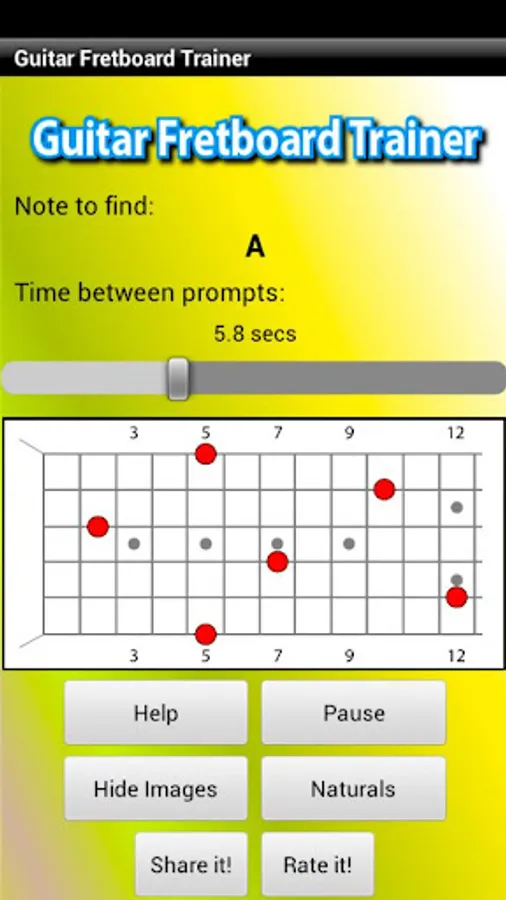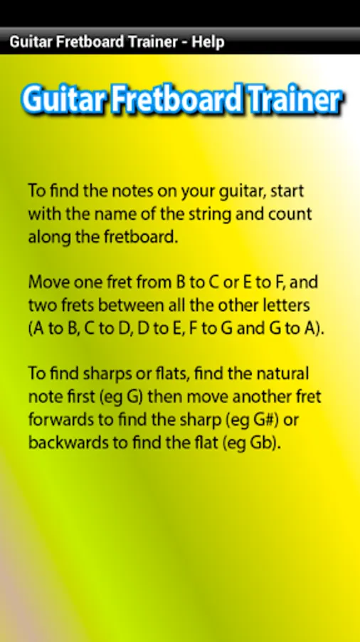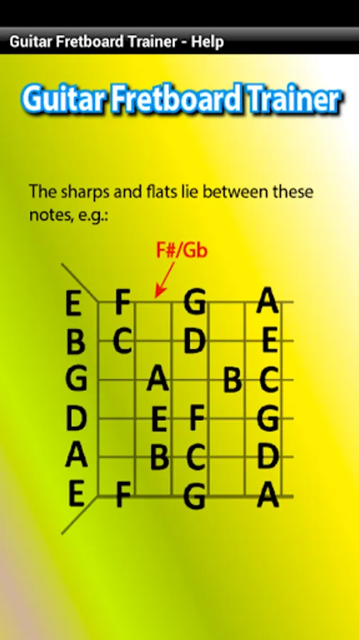 Guitar Fretboard Trainer prompts you visually and with spoken audio, to find randomly generated notes on your guitar fretboard. Start with a single string then as your skills develop progress to two strings, then three, right up to all six strings of your guitar.
