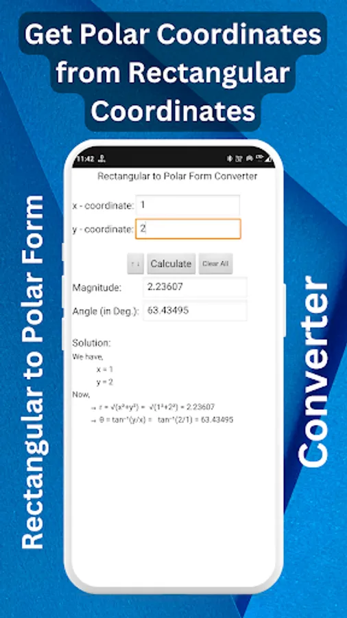 The Rectangular to Polar Coordinate Converter app is designed to cater to the needs of students, engineers, and anyone requiring swift and accurate coordinate conversions. Say goodbye to manual calculations and welcome a hassle-free experience. ✨