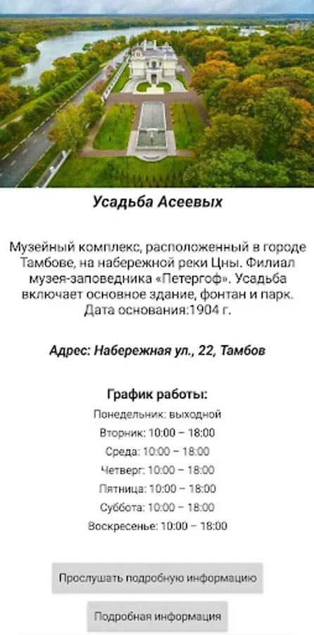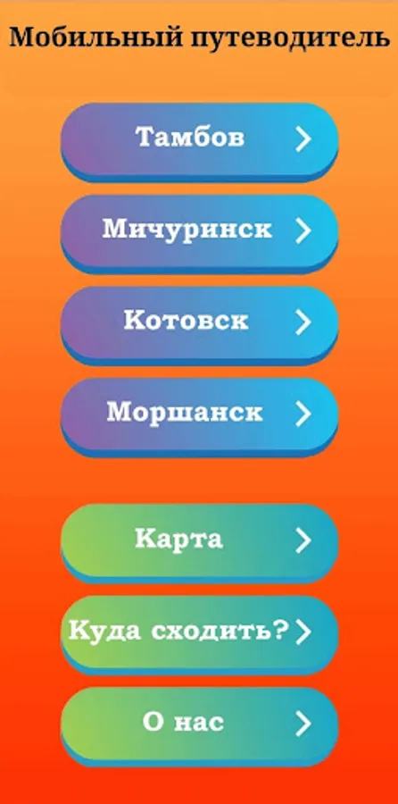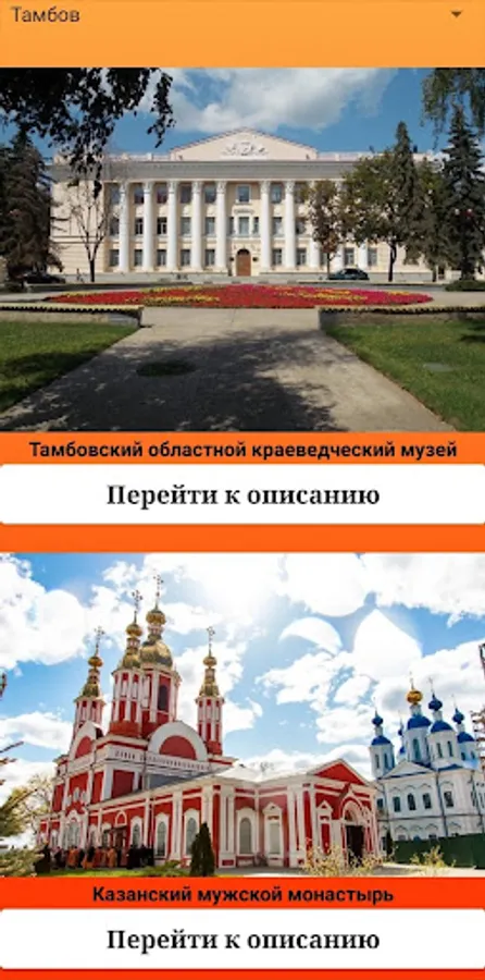 A mobile guide will allow a person to get to a place of interest to him. Today, this is a relevant mobile application that allows you to determine the user's location and build a route to the place he has chosen, as well as study a detailed description of the sights of the Tambov region that are in the application.