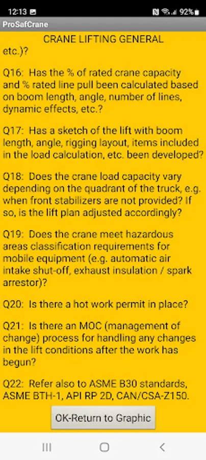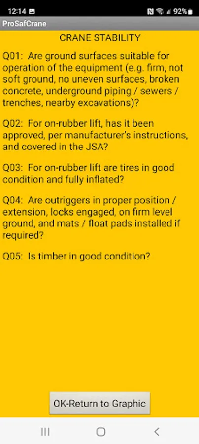 ProSafLift accesses a cloud database of over 100 questions / inspection items in 15 equipment categories relevant to safe mobile crane lifts in process plants. Users can also store their personal inspection notes on their own device or submit them for inclusion in the global questions database to benefit all app users.