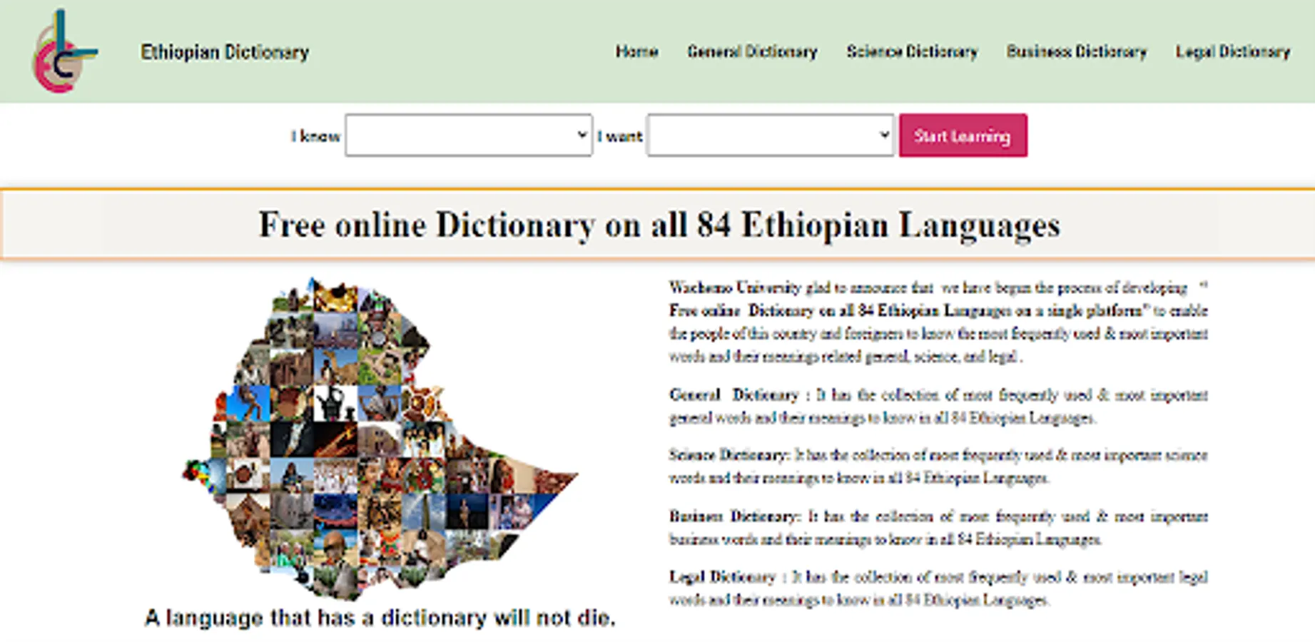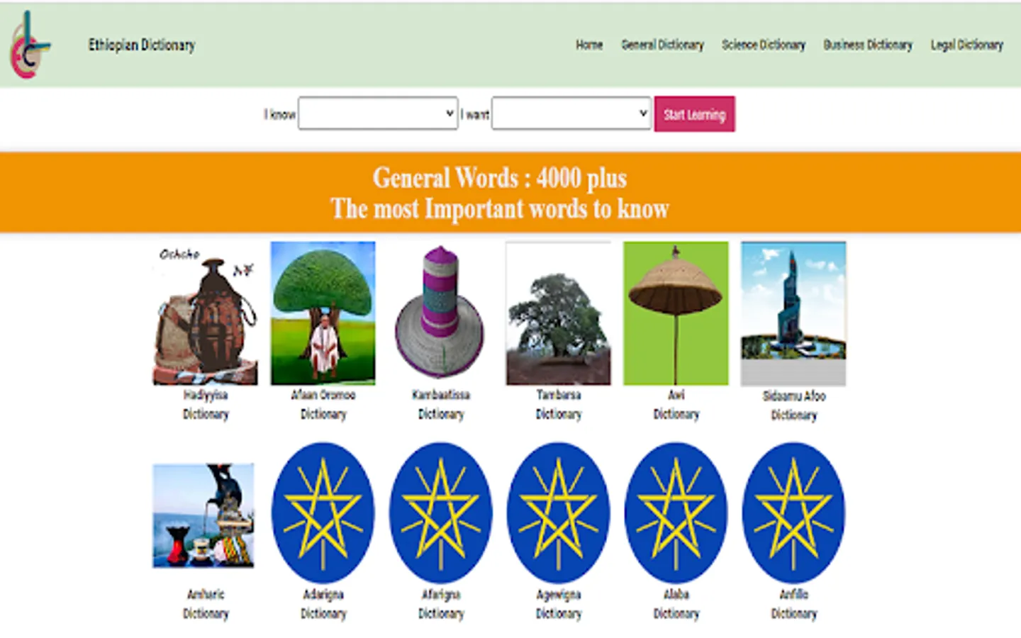 We are glad to announce that we have begun the process of developing “ Free online Dictionary on all 84 Ethiopian Languages on a single platform” to enable the people of this country and foreigners to know the most frequently used & most important words and their meanings related general, science, and legal .