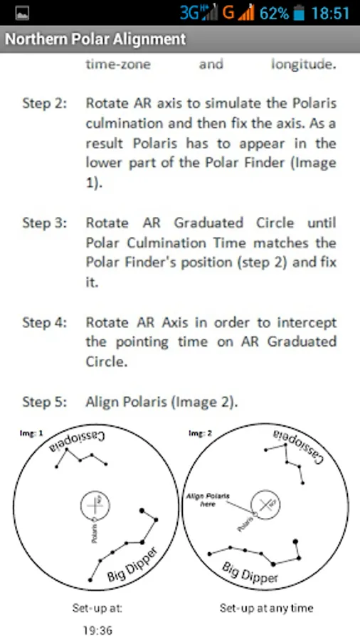 Step 3: Rotate AR Graduated Circle until Polar Culmination Time matches the Polar Finder's position (step 2) and fix it.