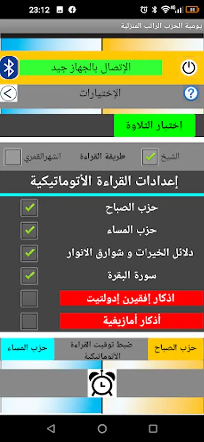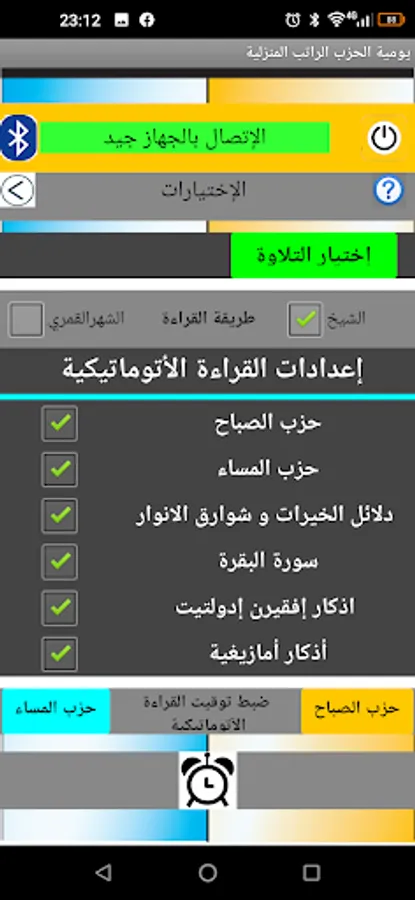 Automatic reading of the morning and evening parties at the chosen and set time from the application