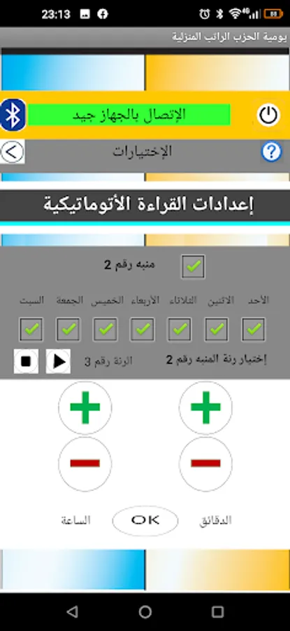 The device through the application provides many options for each alarm (alarm timing, alarm days, Islamic ringtone ...)