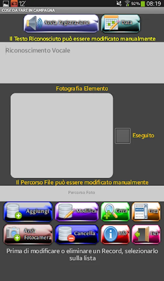 This application has the function of storing data of Things to Do in Campaign, using the voice recognition system of Android, by converting your voice into text.