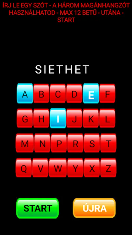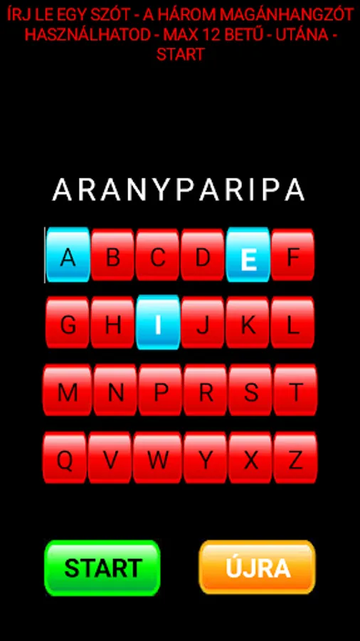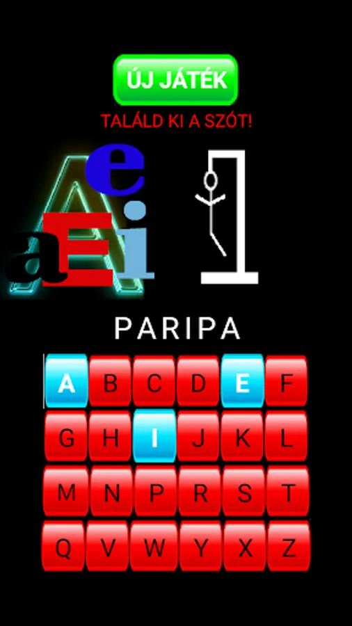 Two - or more - you know play. Have used three vowels, can aszparanta, eszperente, iszpirinti word formation, or mix them together. When typing - START - you hand the device to the player ... a player tries to guess the word, if you want to help me a little bit - or more - by entering the letter ... the rest comes by itself ...