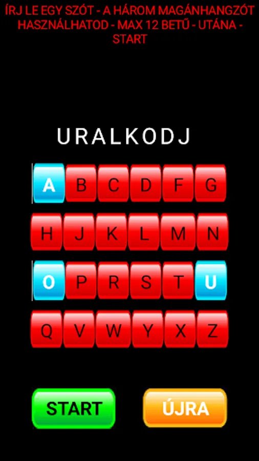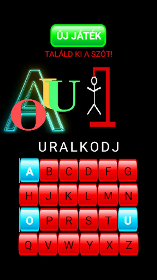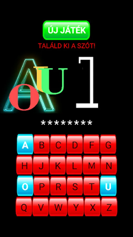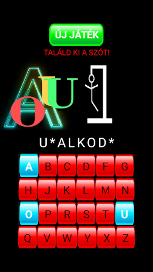 Two - or more - you know play. Have used three vowels, can aszparanta, oszporonto, uszpuruntu word formation, or mix them together. When typing - START - you hand the device to the player ... a player tries to guess the word, if you want to help me a little bit - or more - by entering the letter ... the rest comes by itself ...