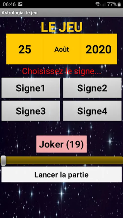 Astrologia is a smartphone game based on the signs of the Western and Chinese zodiacs. During each game, a date (day, month and year) is offered with four signs of the zodiac. Among these proposals, only one corresponds to the proposed date. It's up to you to find it. As you go, you collect points which will lead you to gain levels.