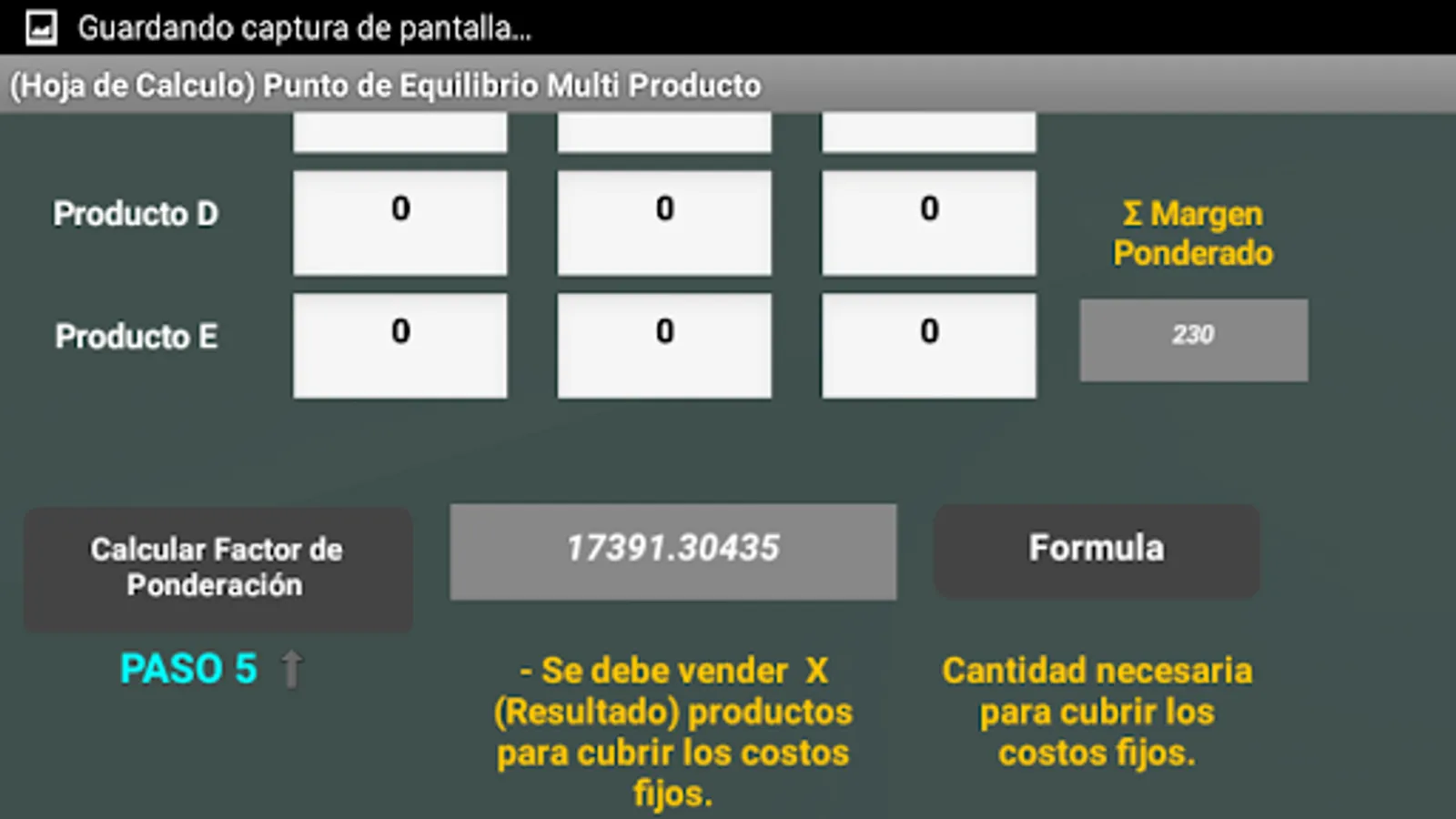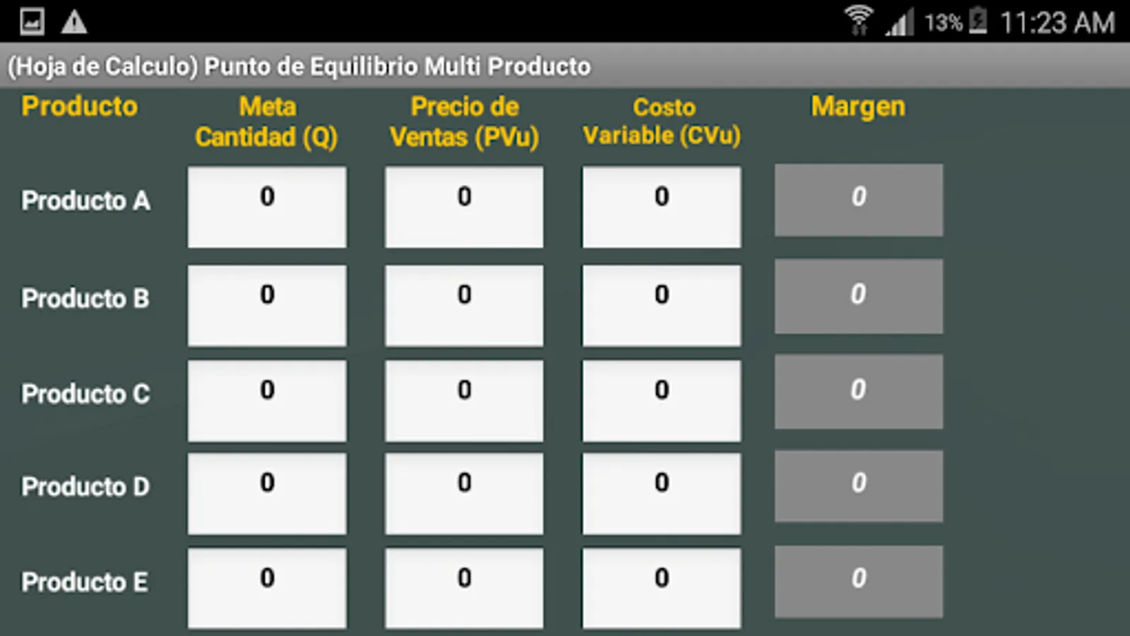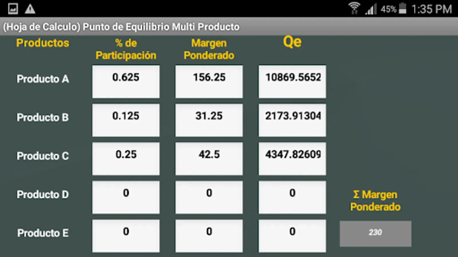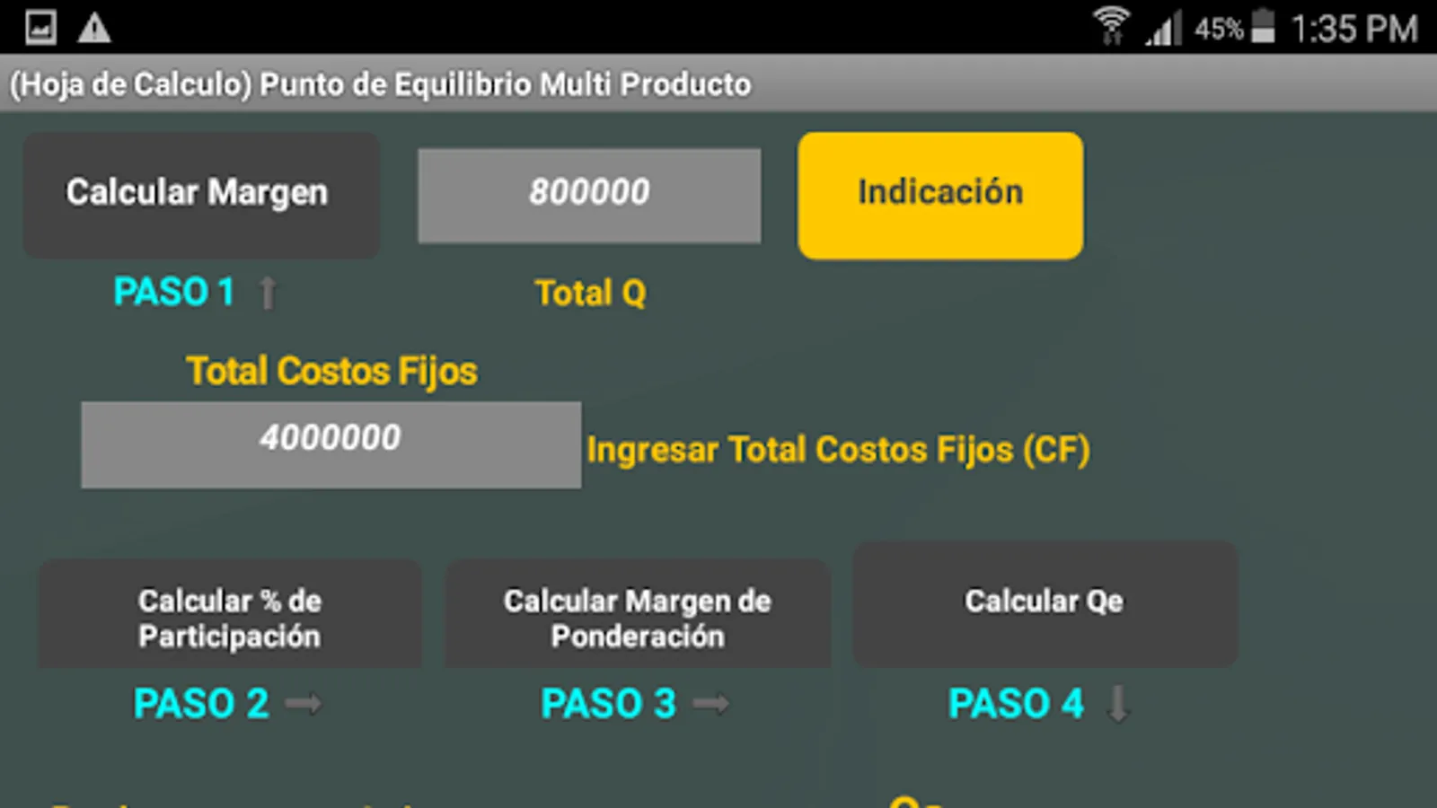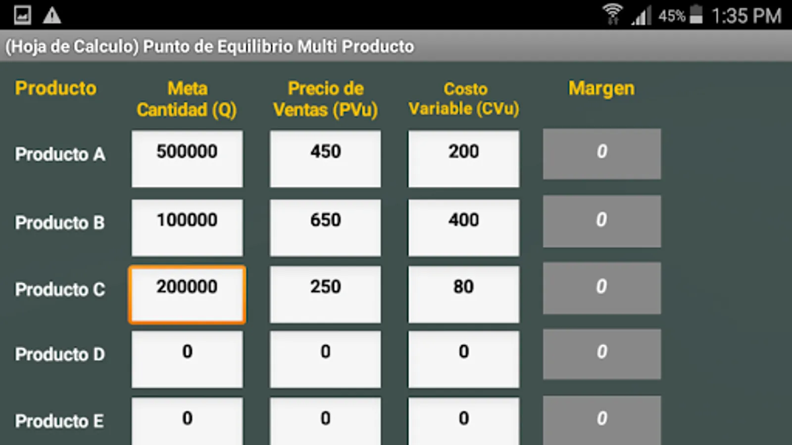 - Ingrese todos los datos de los productos (Q, PVu , Cvu y CF)