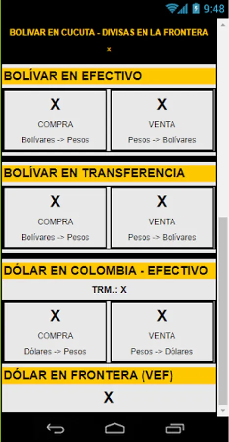 Applicative for the values of buying and selling currencies on the border Colombia - Venezuela.