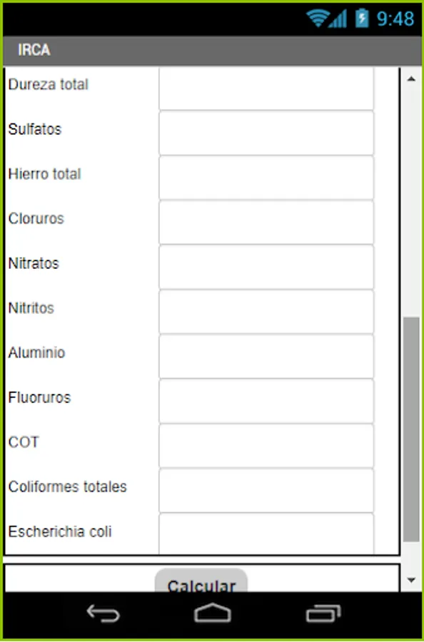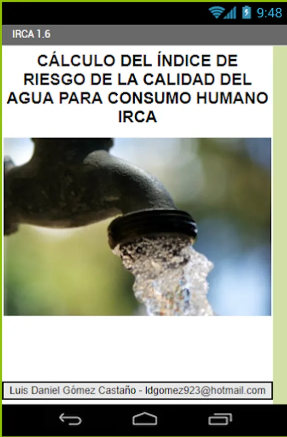 Applicative calculation Risk Index Water Quality for Human Consumption - IRCA - referred to in Article 12 of Decree 1575 of 2007 and established the methodology in Articles 13 and 14 of Resolution 2115 of 2007, Ministry of Social Protection and Ministry of Environment, Housing and Territorial Development.