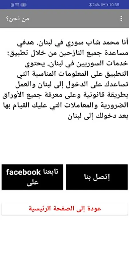 Syrians services in Lebanon is a phone application that contains the appropriate information that helps the displaced to enter Lebanon and work in a legal way and to know all the necessary papers and transactions that they must carry out after entering Lebanon