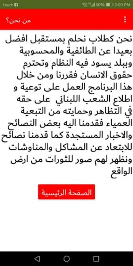 Revolution is a mobile application that help people to expend their knowledge about the Lebanese revolution and give them some tips and tricks about October 17 revolution and how to act in real life situation. Our aim is to contribute in changing our country and lives for the better.