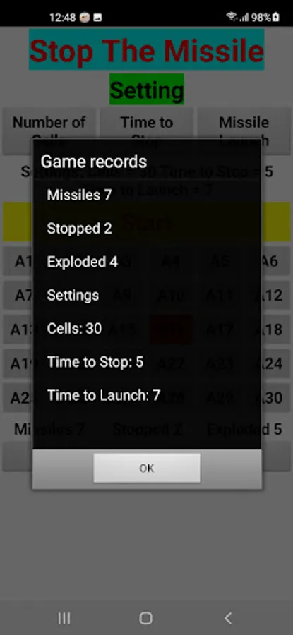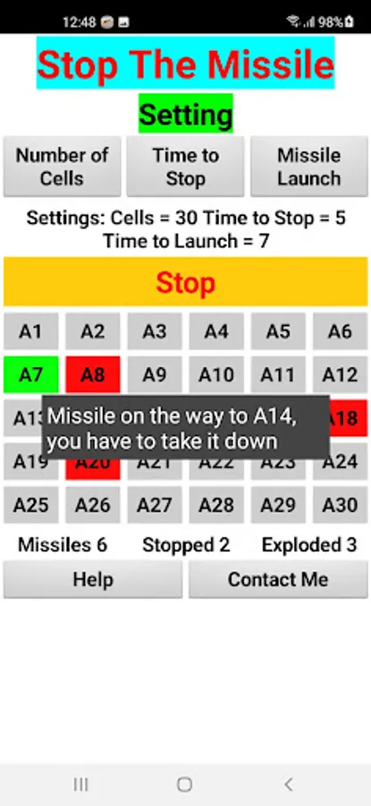 * You will get a message when a missile is launched, you will have to click the cell that is under attack, in the setting you define the time between the alarm and the explosion