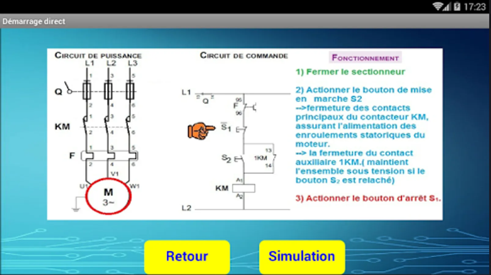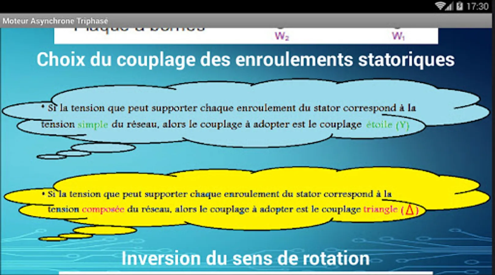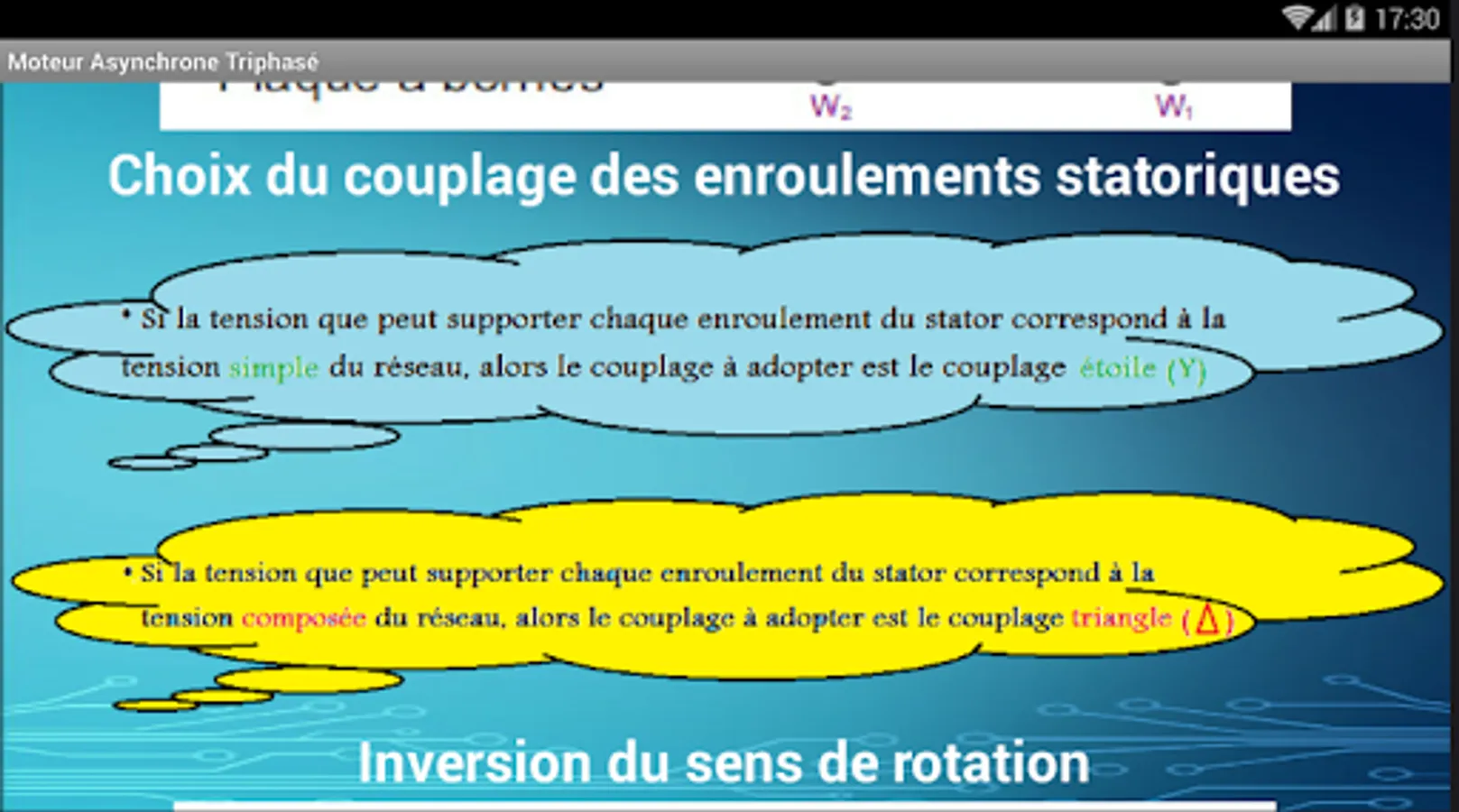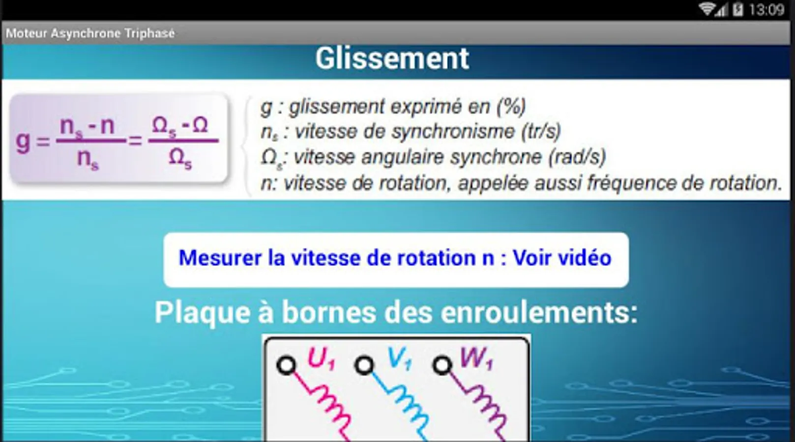 The application contains two lessons; Balanced three-phase system, three-phase asynchronous motors.