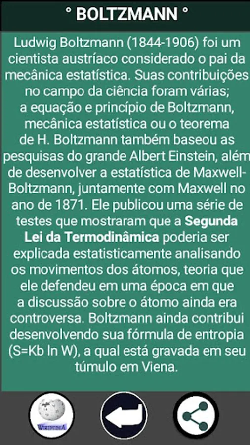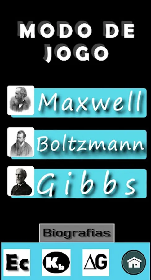 When playing this Quiz, the player can learn about Thermodynamics, in addition to meeting the main contributing scientists for this area of Chemistry, through the menu “biographies”, which has a summary of the biography of each of the scientists. For this reason, it is a great App to be used by teachers and students.
