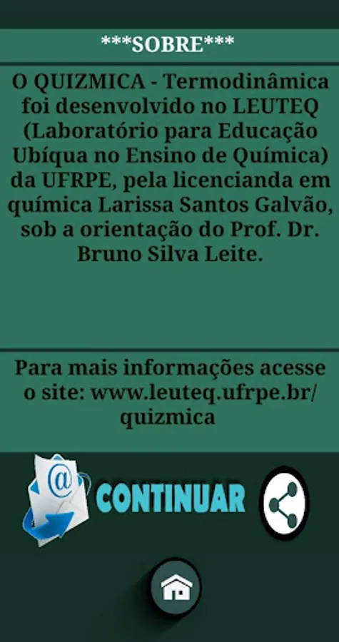 The application was developed at LEUTEQ (Laboratory for Ubiquitous and Technological Education in Teaching Chemistry) of the Federal Rural University of Pernambuco.