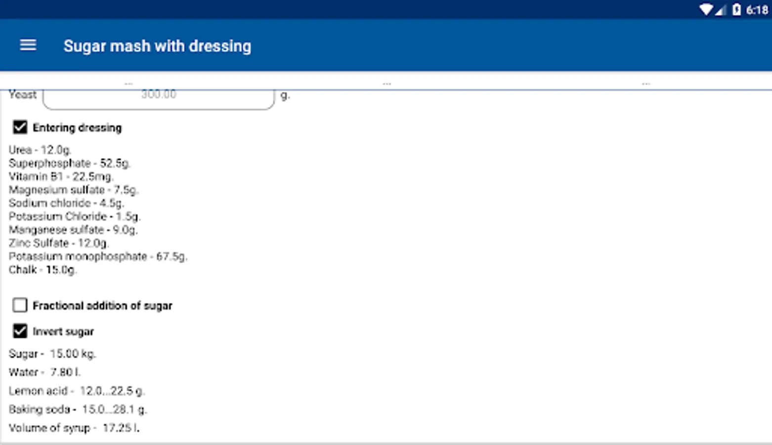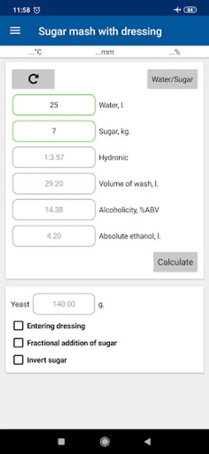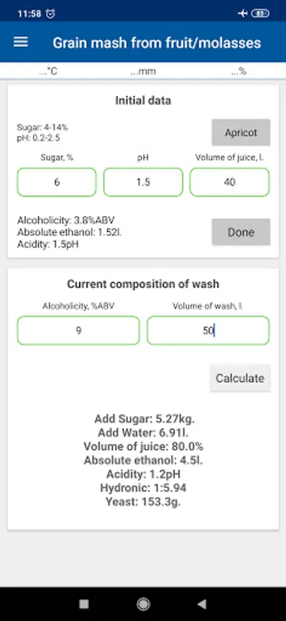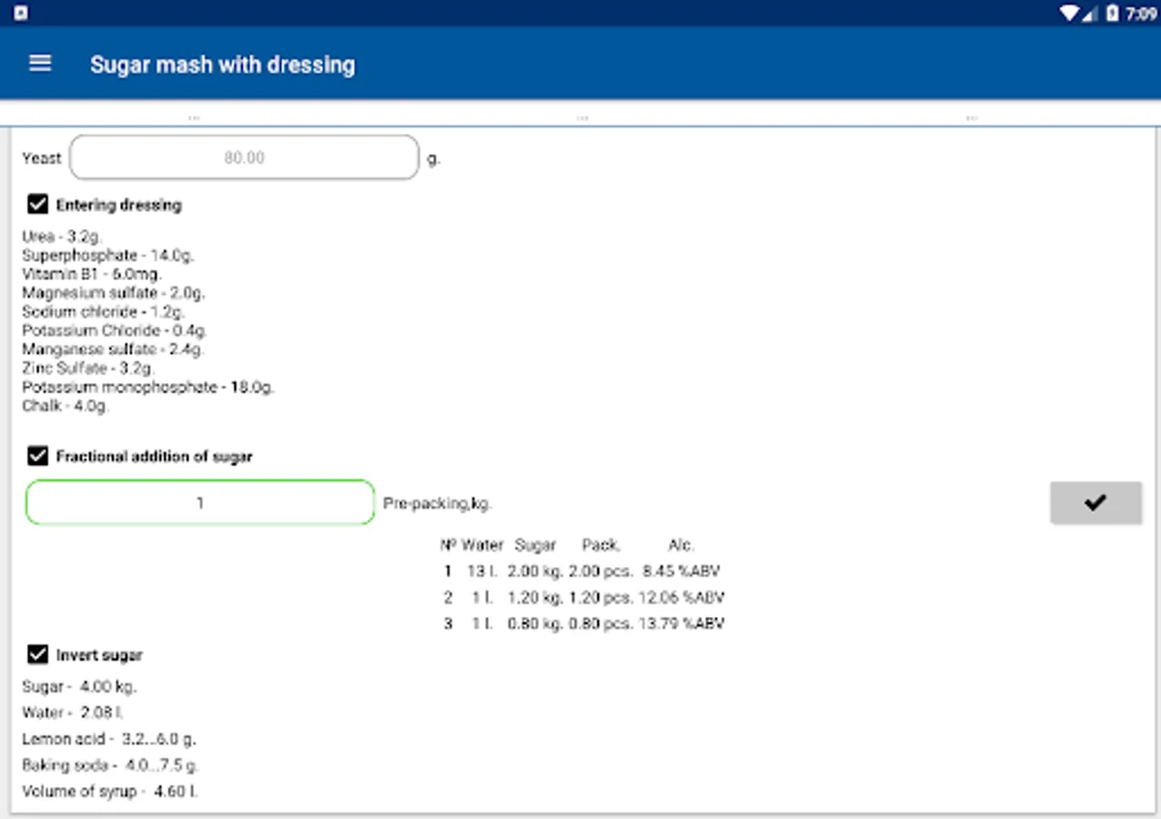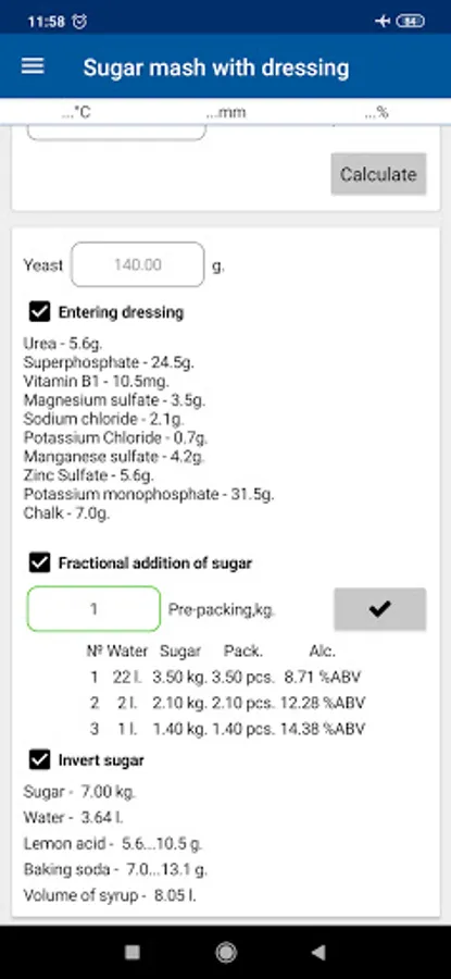 11. Sugars for a given number of ingredients, volume and spirituoznosti, as well as hydromodule;