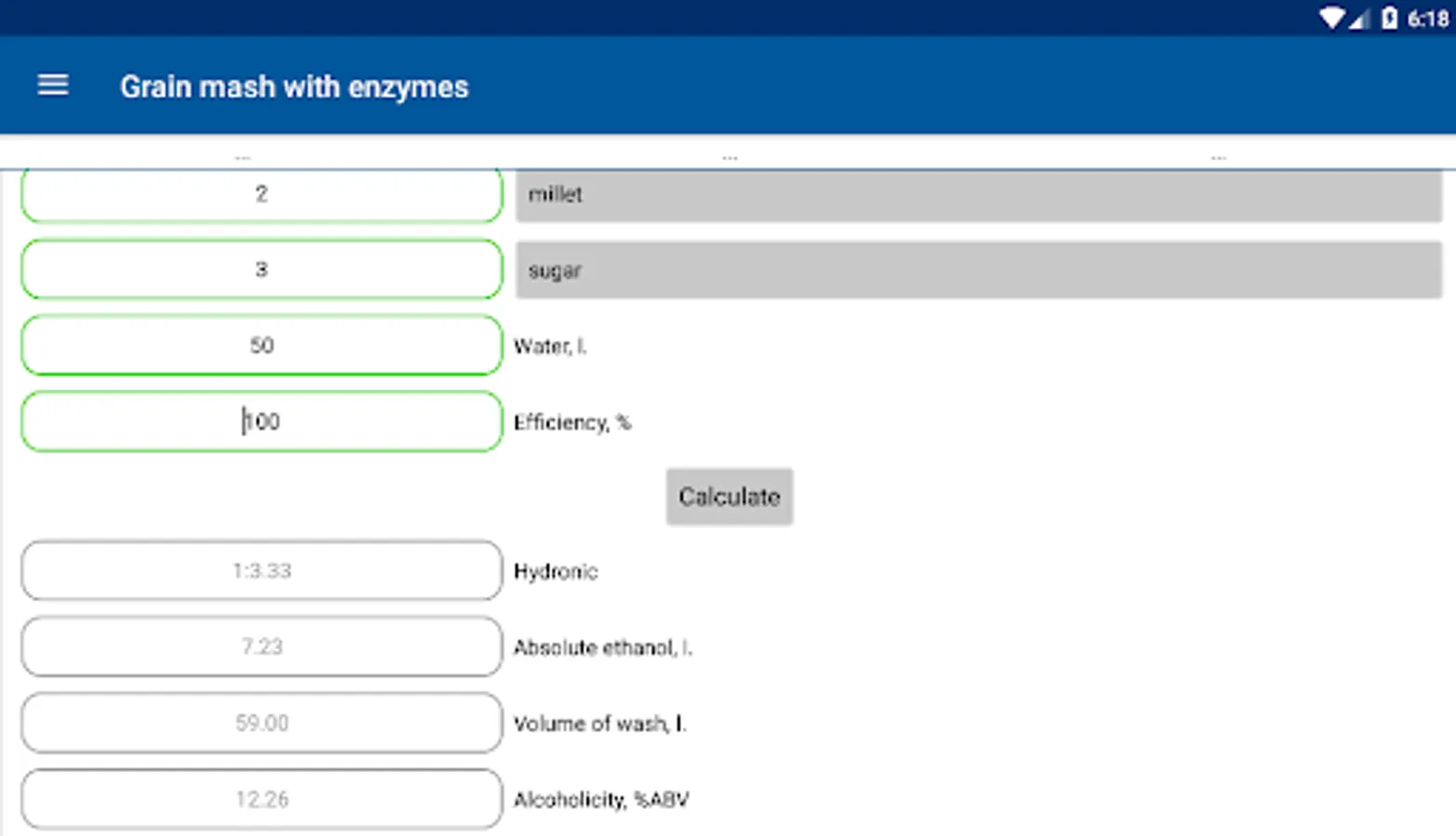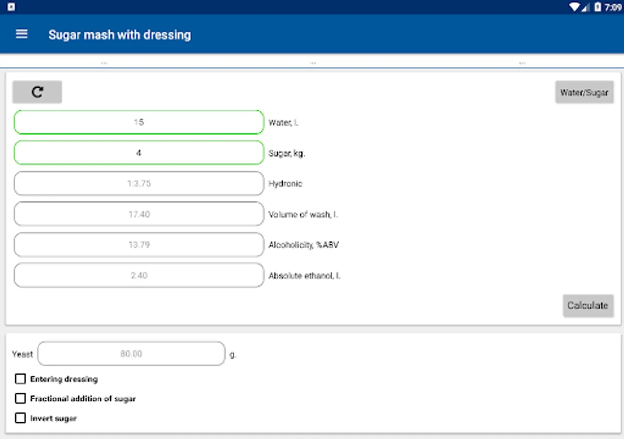 The calculator calculates: