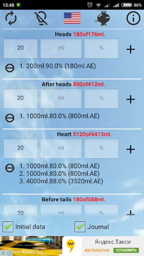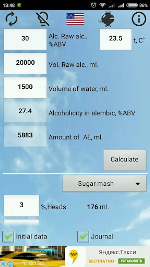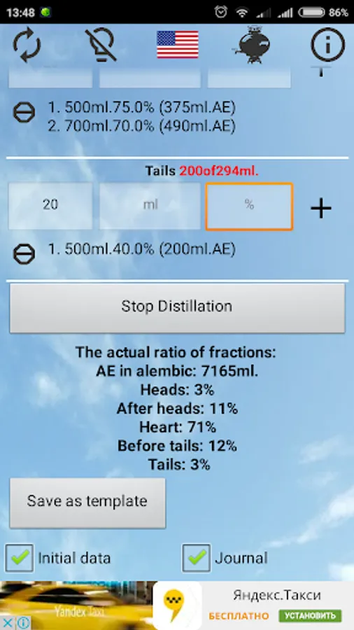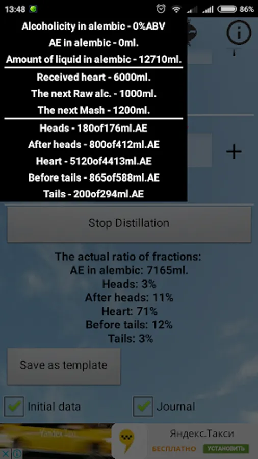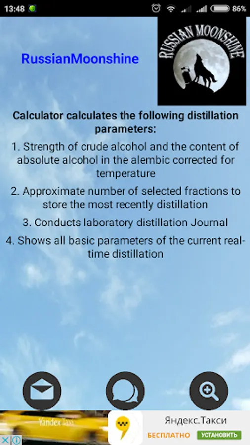 The app is a calculator fractional distillation Leopold Gray adapted for Android devices.