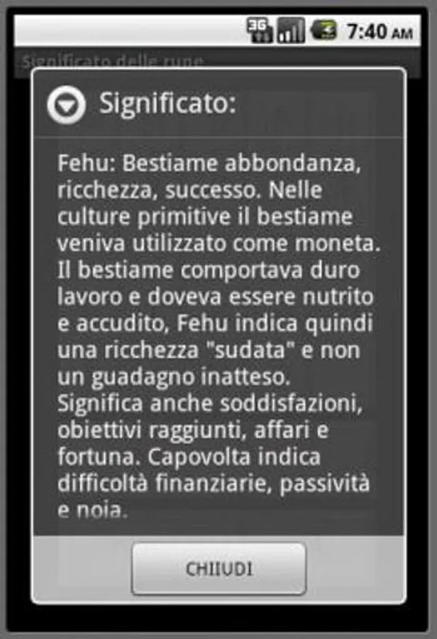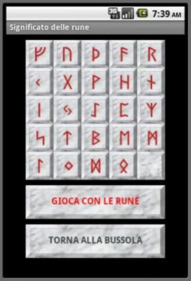 The app consists of two parts: the first is a Celtic compass, vegvisir, working with the detector of magnetic field of the smartphone. There is also a list of the Celtic runes with an explanation of their meaning. Finally there is also a game that simulates the launch of runes to play to see what it stands