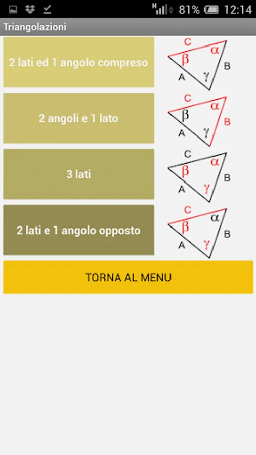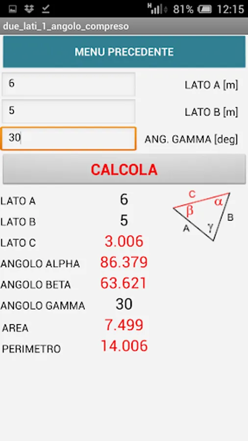 Triangulations: given three elements of any triangle the unknown elements plus area and perimeter are calculated.