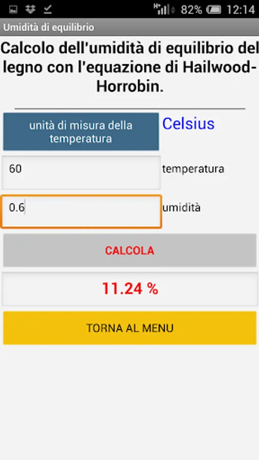 Relative humidity of the wood: given the humidity of the air and the temperature, it is estimated what the relative humidity of the wood will be at balance