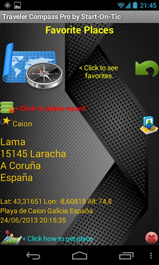 Traveler Compass will help when outside their usual environment to locate and return to its starting point recorded in the log, now always know how to go back to his hotel to find that site that wanted to visit again, find that restaurant that you both taste and all your favorite places.