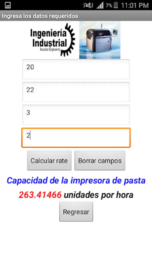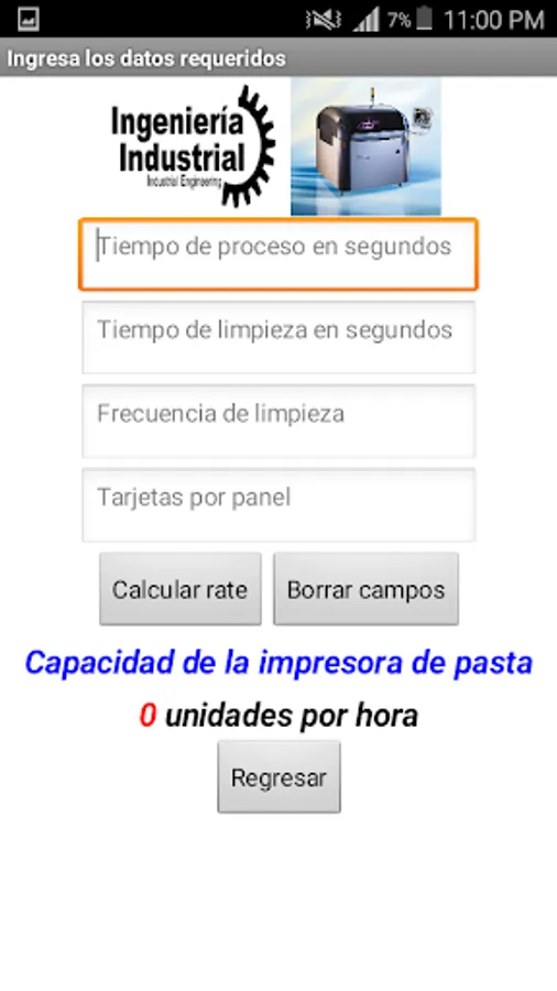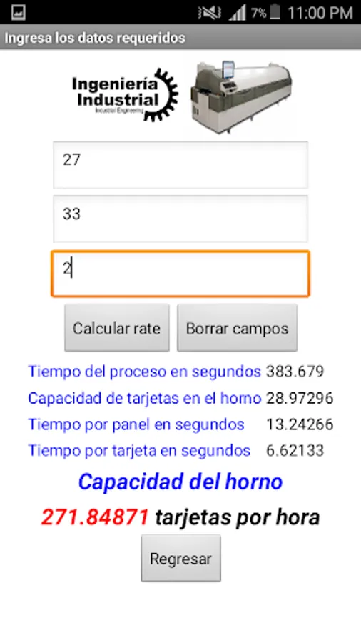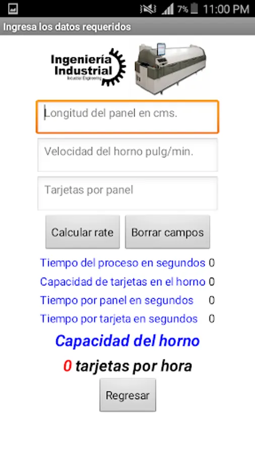 This application is used to calculate the hourly capacity of a reflow oven pasta or printer.