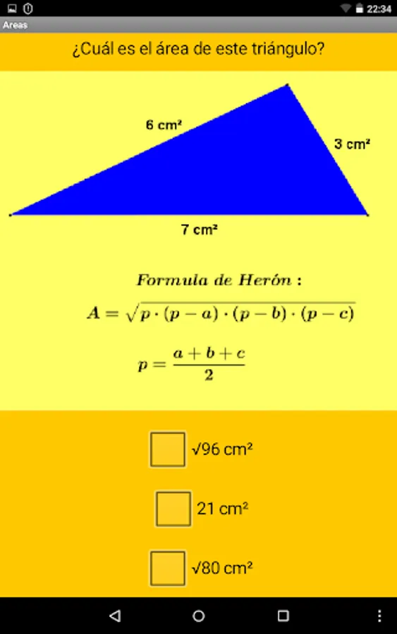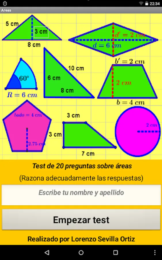 Test of 20 questions about areas of plane figures for final-year students of primary and secondary first.