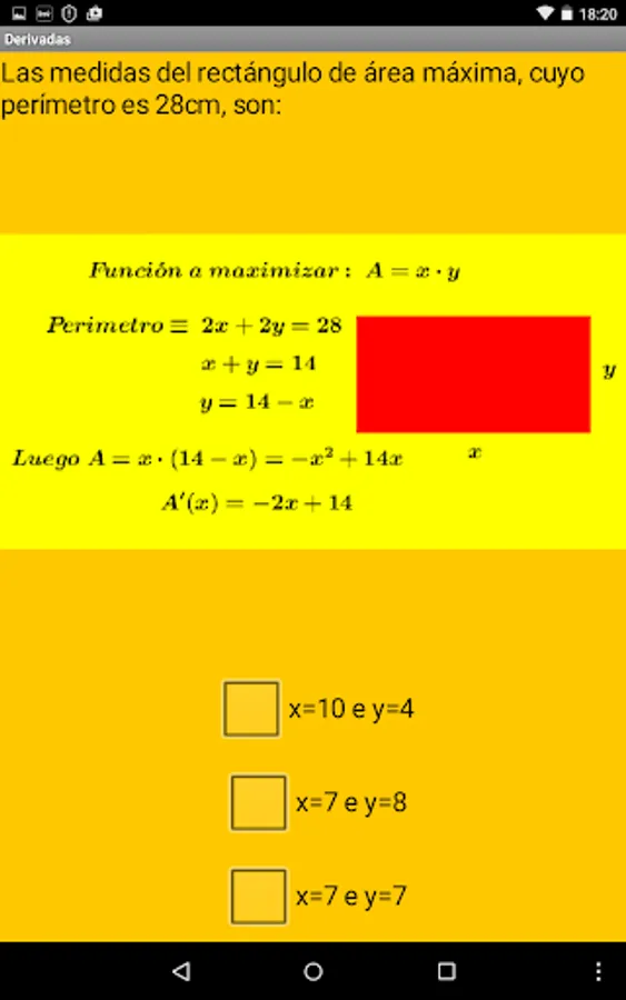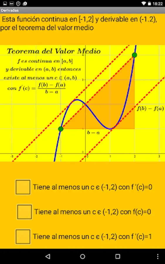 Test of 20 questions on the interpretation of the derivative of a function, applications and theorems most important calculation using the differentiability of functions.