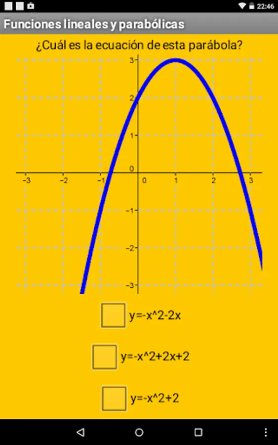 It is an application of 20 multiple choice math questions on linear and parabolic functions. Serves to practice the contents of the teaching units function in the subject of Mathematics for level 3 and 4 ESO.