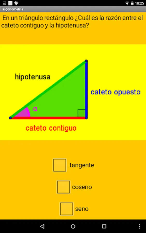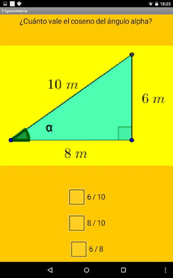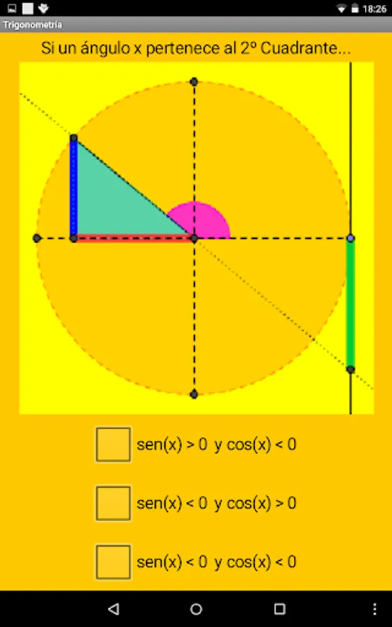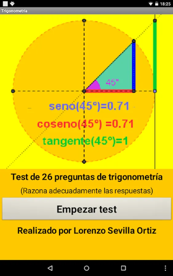 Test math questions on trigonometry, where basic problems are studied, the fundamental relationship of trigonometry, relationship between opposite angles, supplementary sign and values of the basic trigonometric relationships and application of trigonometry to simple problems.