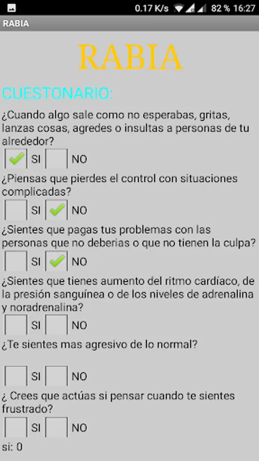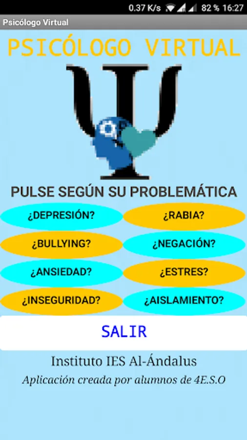 Query application developed by students of IES Al-Andalus (Almería) intended to provide accurate information to students problems. The application makes a small survey and gives results according to answers. This application is reviewed by the psychology department of IES Al-Andalus but should not be considered as a medical or therapeutic tool.