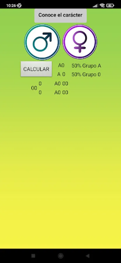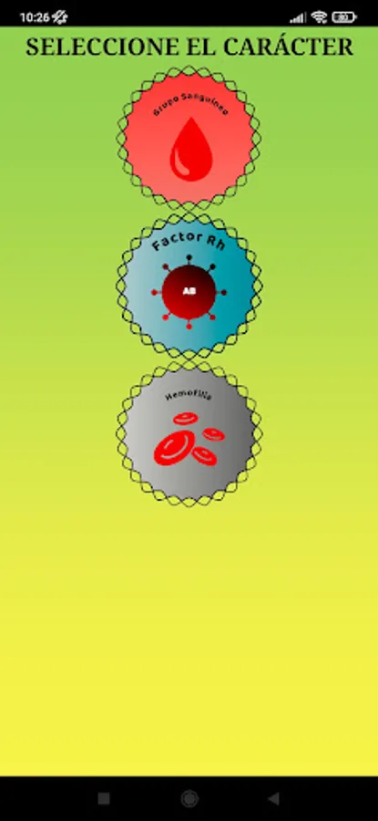 Thus, by making this application we want to facilitate the performance of these hereditary calculations, in such a way that those people who are interested in finding out the hereditary percentages of some of their characteristics (blood group, Rh factor and hemophilia) in their children of a simple and fast way, just have to enter your data in it.