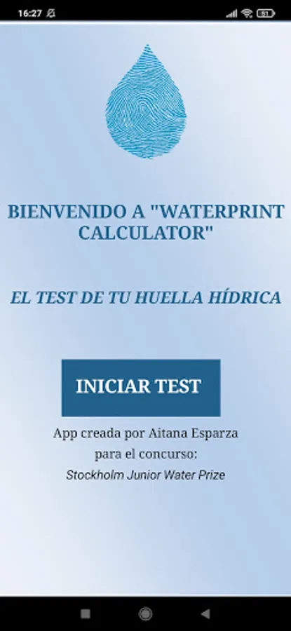 Aitana Esparza Idoate made this calculator to know your daily water footprint for the Stockholm Junior Water Prize 2020.