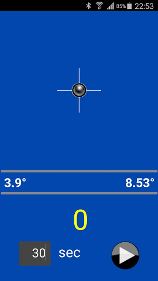 At the bottom left of the field you can read the number of degrees of the short side of your smartphone in relation to the horizontal plane.