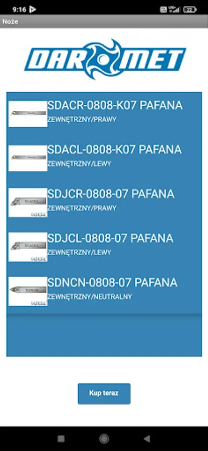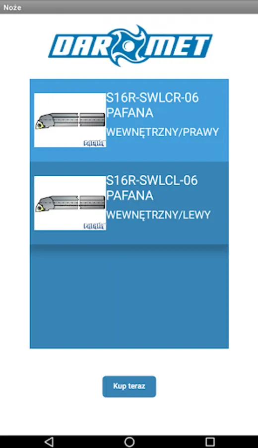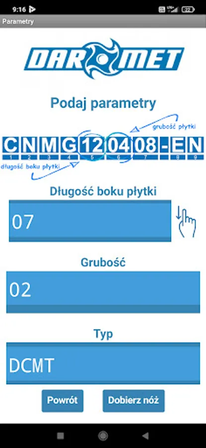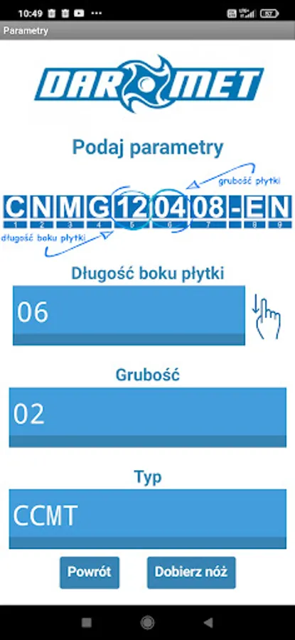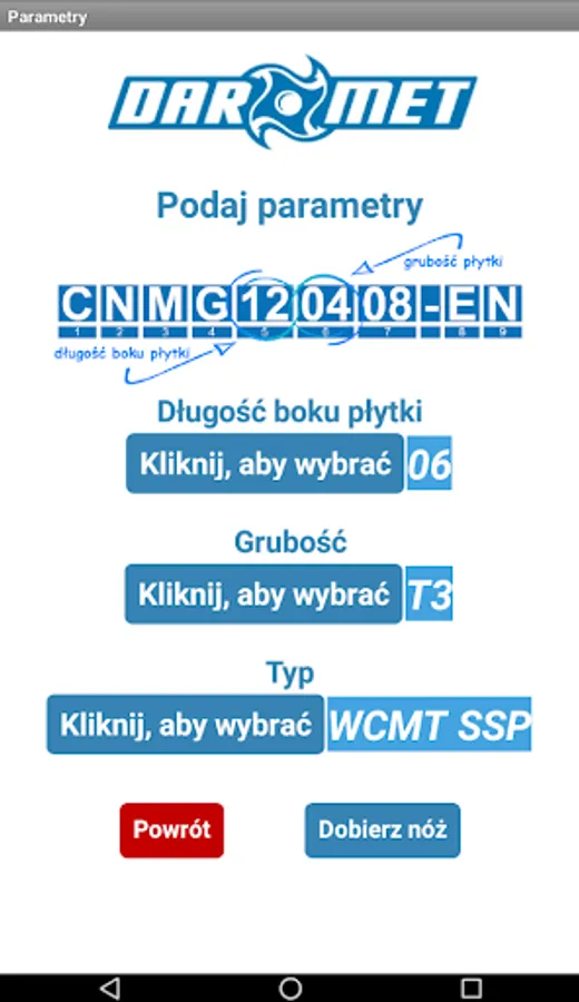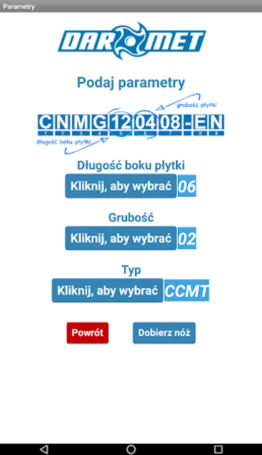 After defining the indexable insert designation, the application selects the types of turning tools that match the indexable insert model.