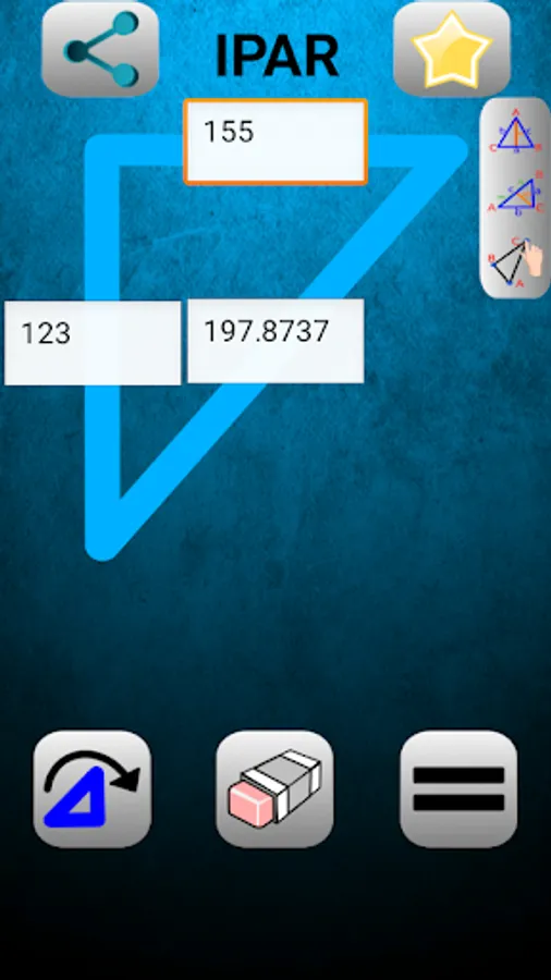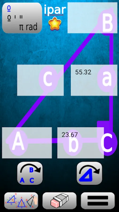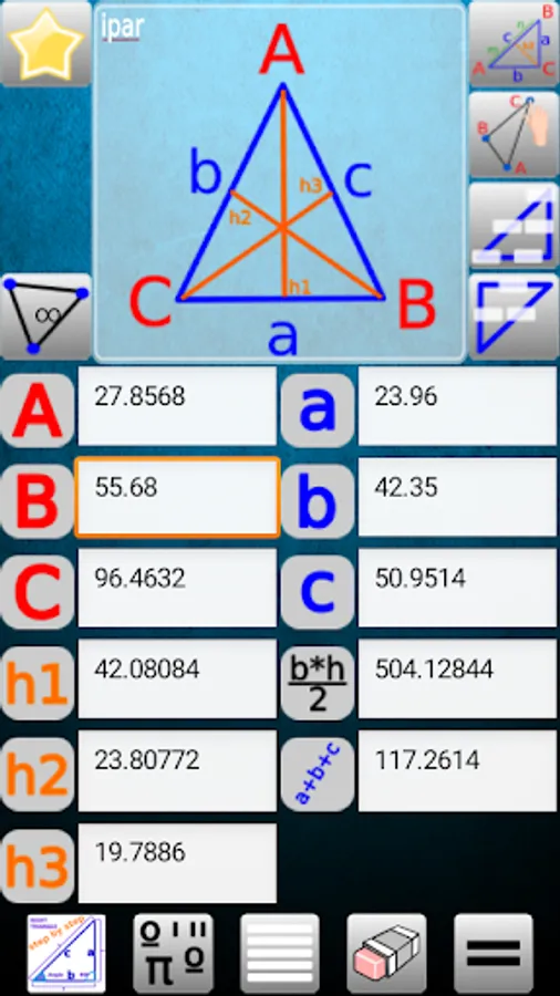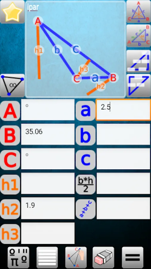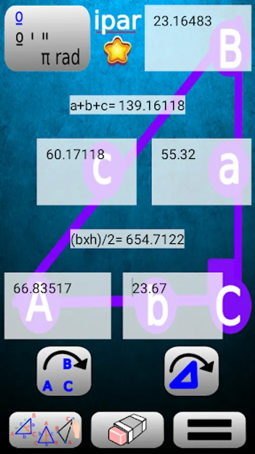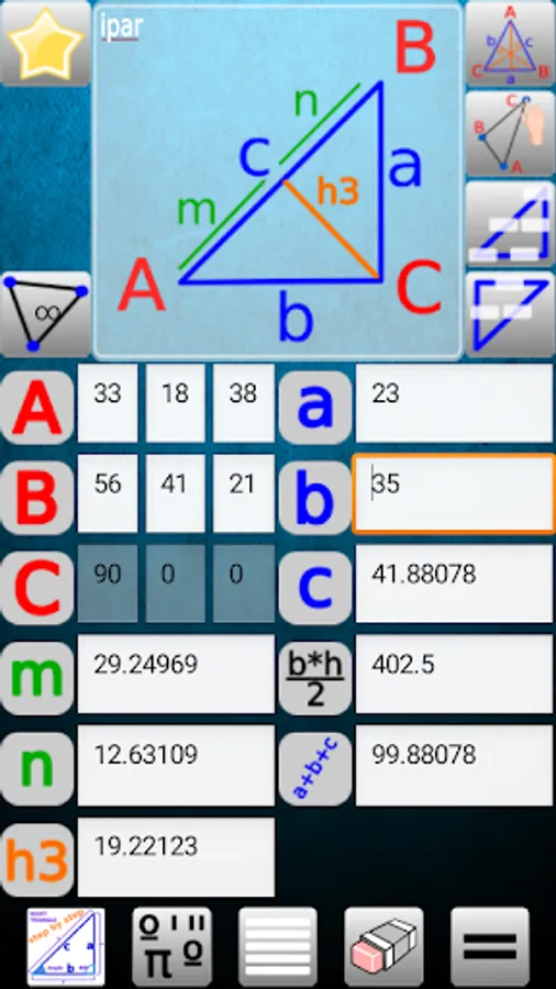 Ipar, Triangle and Right Angle Free helps to solve math problems related to the Right Triangle (Pythagorean theorem, the trigonometric functions), computes the hypotenuse and all triangles. Useful for all types of triangles.. Right triangle.
