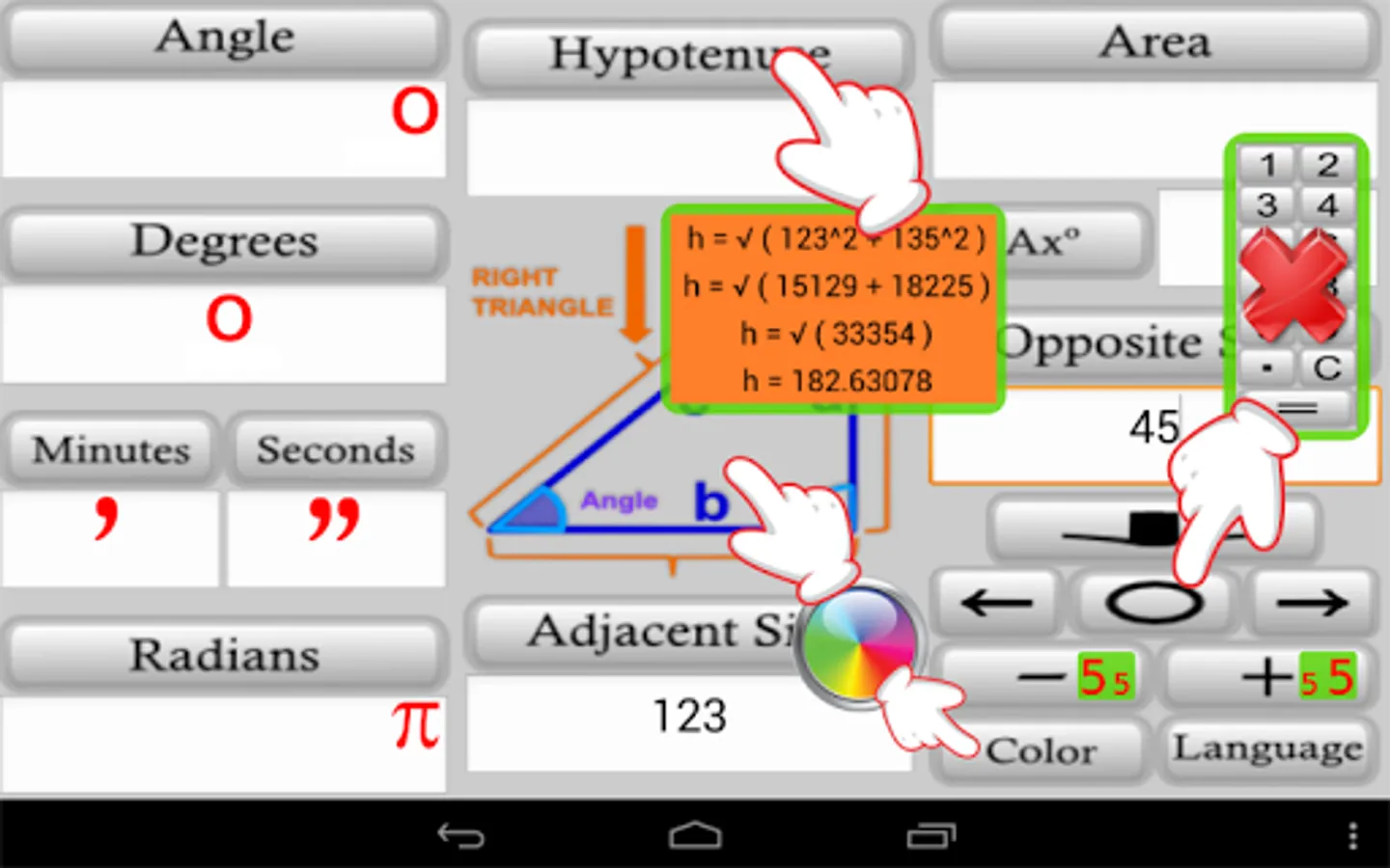 Just tap the name of a variable and see the process. On the right you have a menu with some user-friendly options (color, size numbers, move or remove the keyboard). If you touch the triangle will change color.