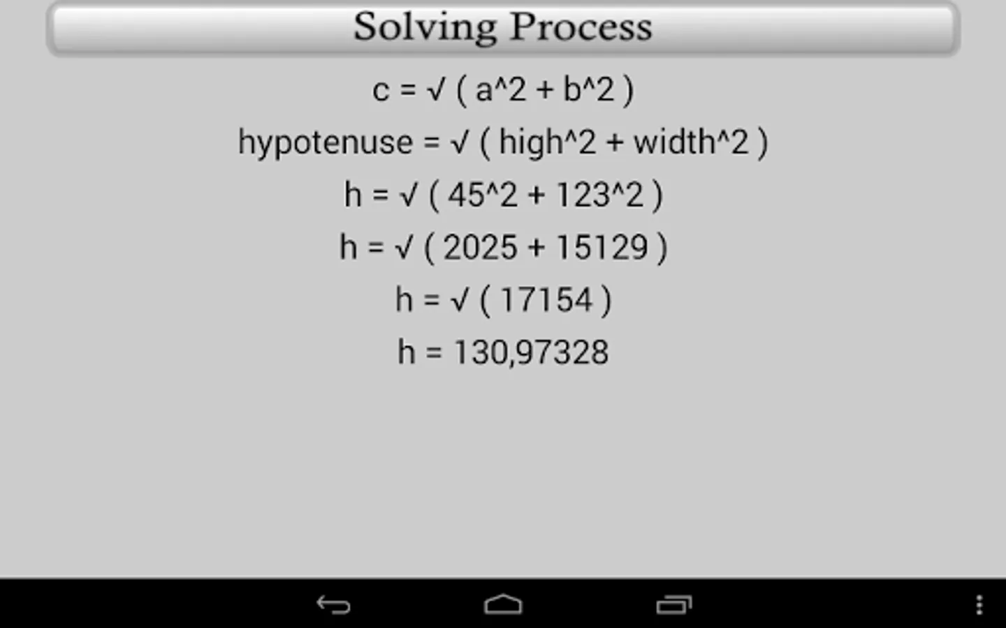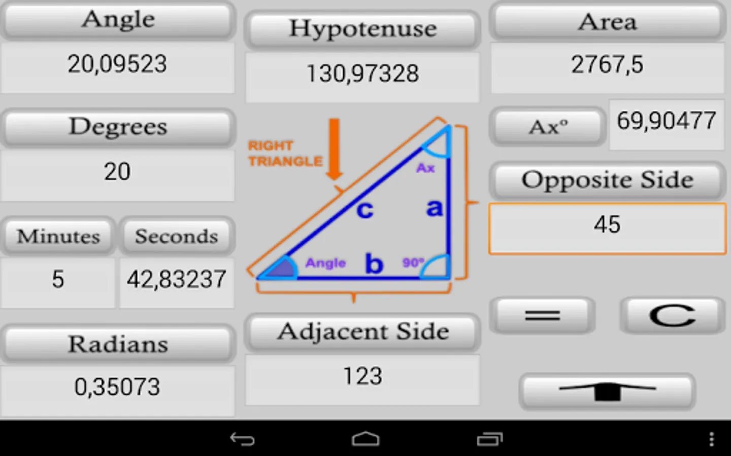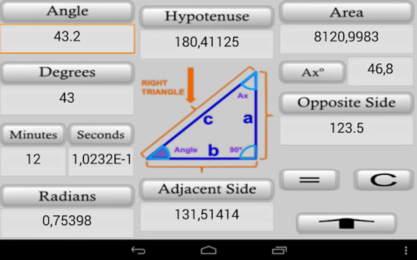 ipar trig calculator free helps to solve math problems related to the Right Triangle (Pythagorean theorem, the trigonometric functions), computes the hypotenuse. Right triangle.