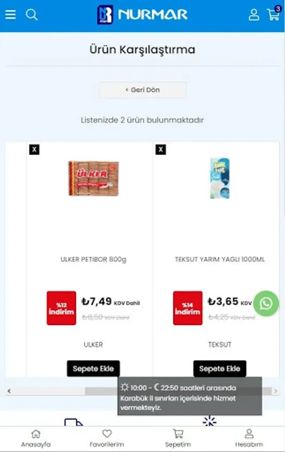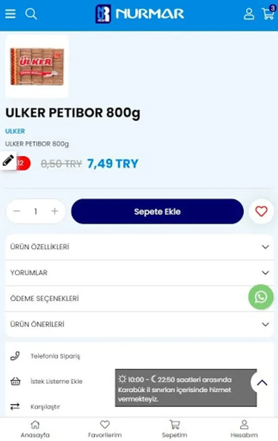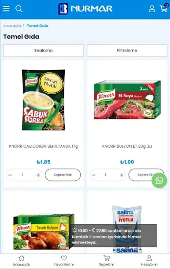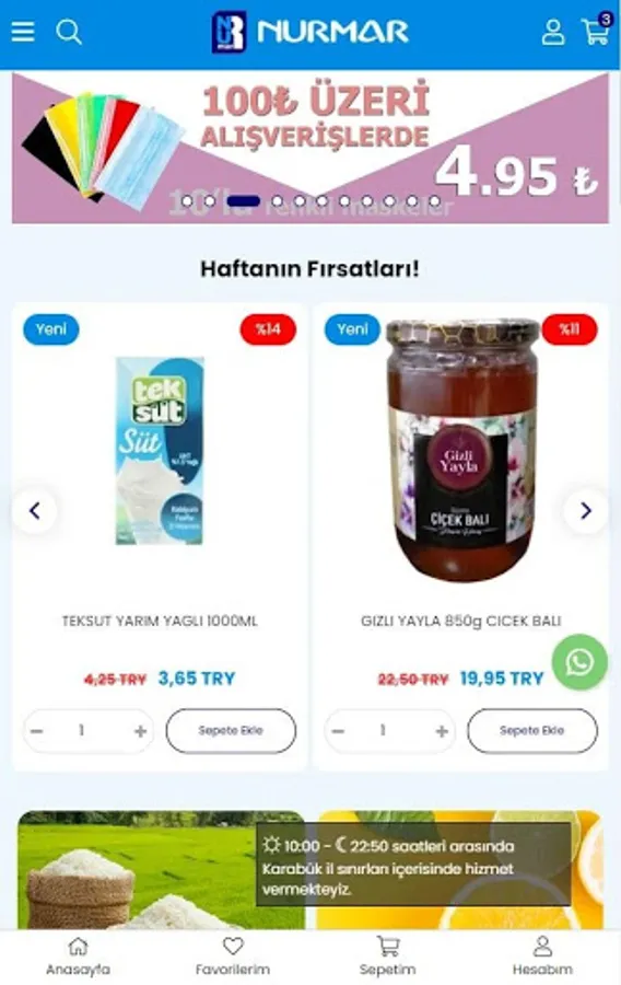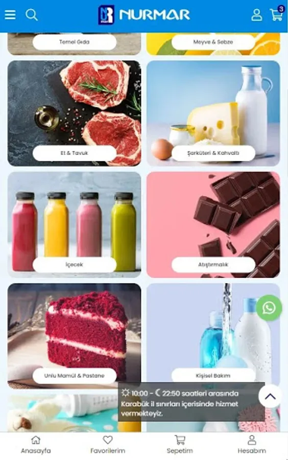 Nurmar Online Market is a shopping site where you can order from your home anywhere in Karabük / Merkez and Karabük / Safranbolu districts. Average delivery time is 2 hours. Have you ever had your kitchen shopping online? Here you have a first.