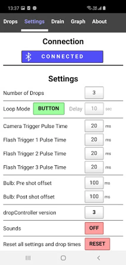 The dropController app is extremely easy to use and to get started with. The advanced loop mode (using delta values) makes it just as easy to capture water drops collisions.