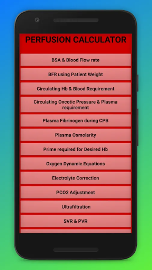 This application consists of basic Perfusion calculations used in CardioPulmonary Bypass and Extracorporeal Membrane Oxygenation.