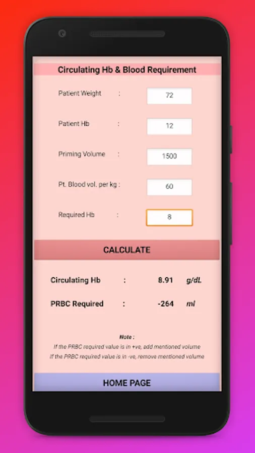 - Priming Volume required for desired Haemoglobin