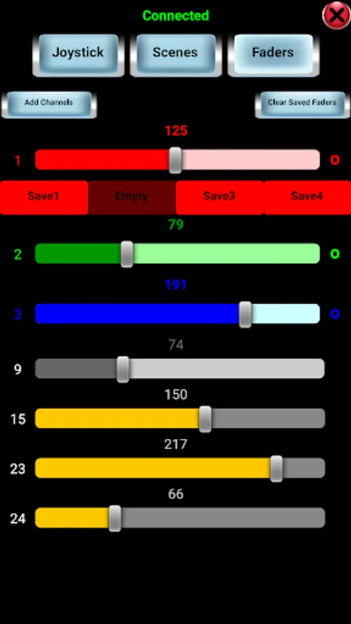 This application combined with our Wireless DMX lighting controller will enable you to control any DMX Lighting wirelessly from your phone or tablet.