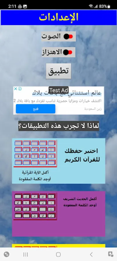 In this game, you have to discover the Sudanese colloquial proverb, with the help of the accompanying images, a game from the authentic Sudanese heritage to discover the Sudanese culture. In this game you will find proverbs from all regions of Sudan in the east, west, south and north.