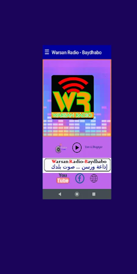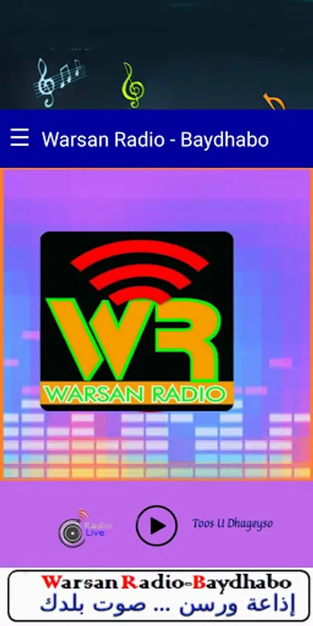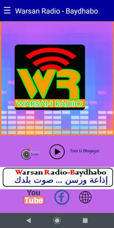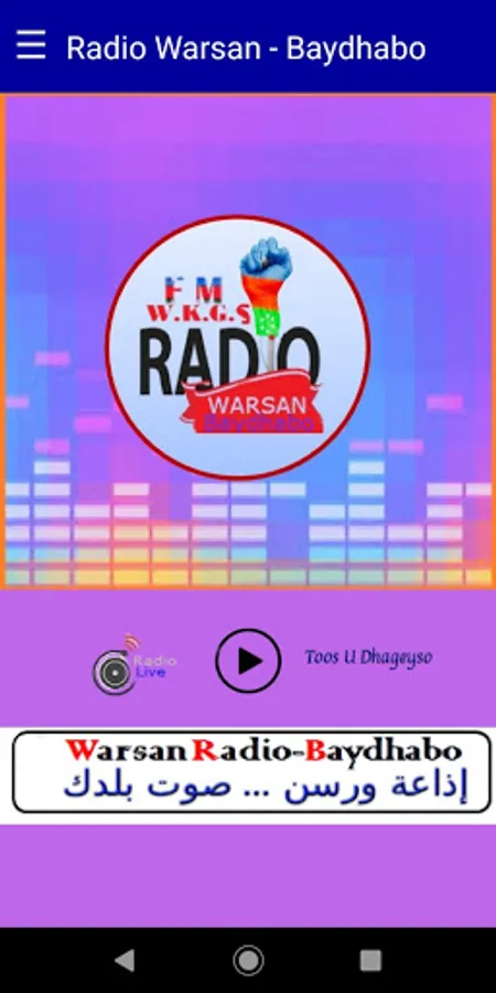 Warsan Radio is a local radio station broadcasts a programs and songs. It based in the city of Baidoa, the southwestern state of Somalia.